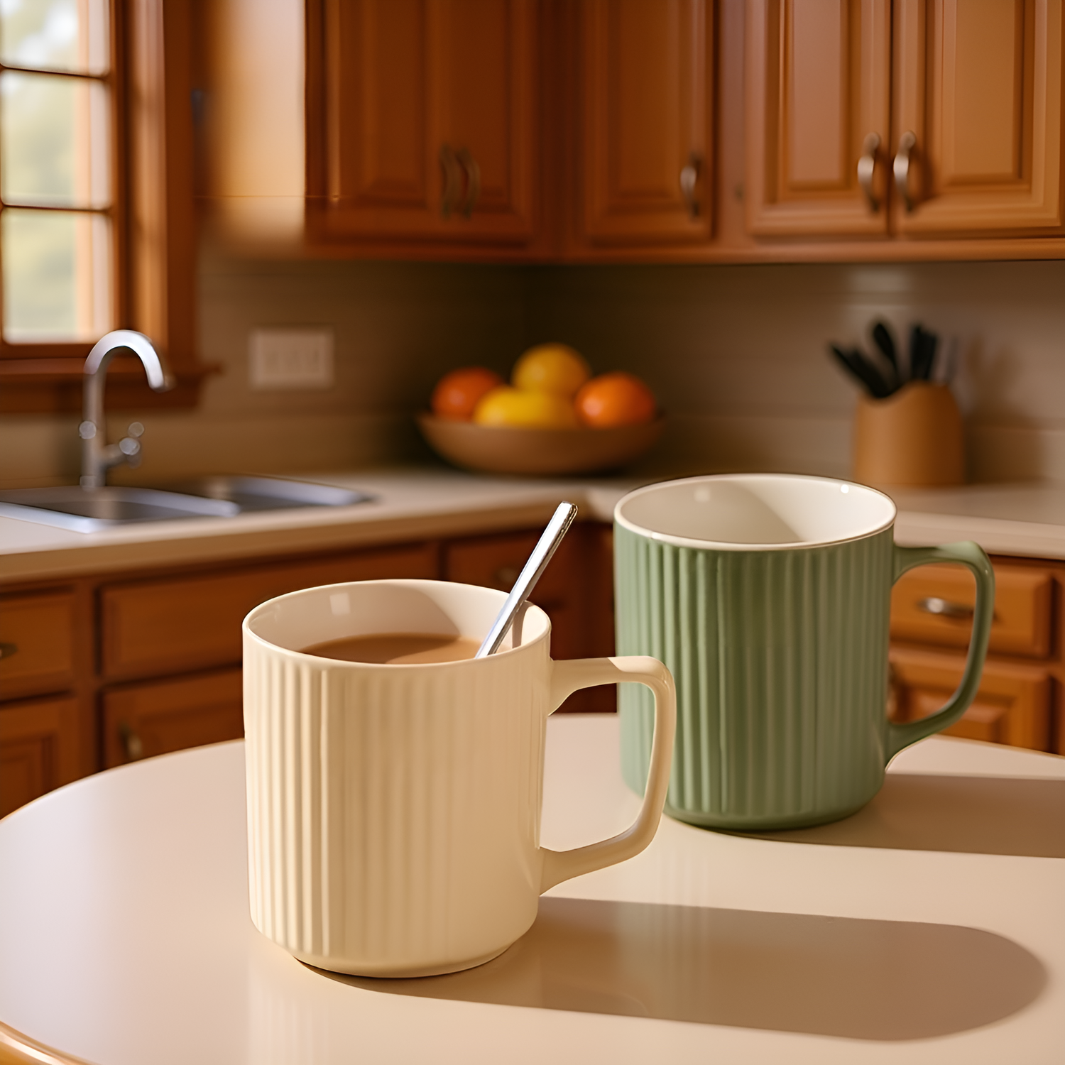 도자기 세로 줄무늬 마크 물컵